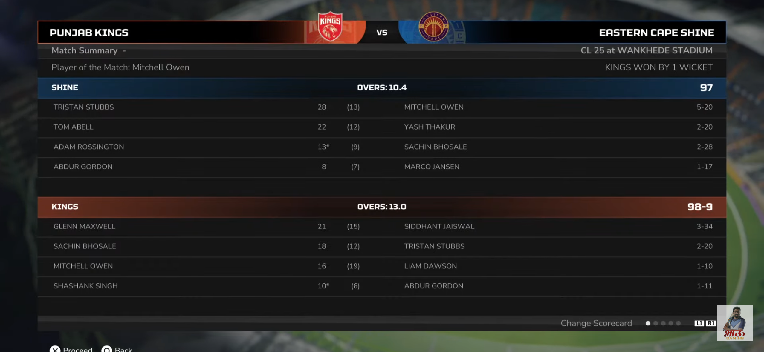| Siddhant Jaiswal : 48/2 - 6.1 Overs |
