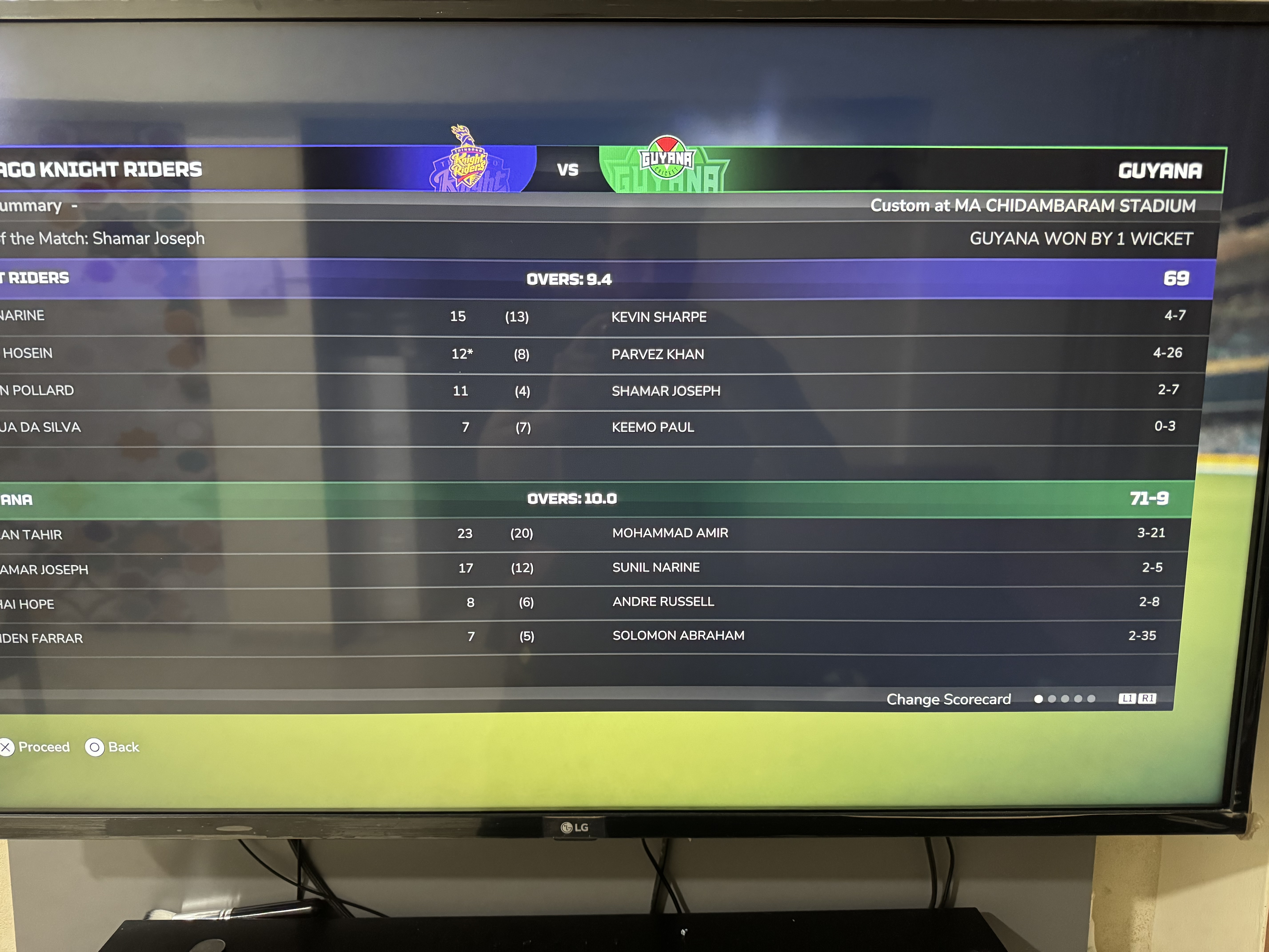 Amar Parekh Won game against Tabby . by 1 Wickets 1.4 overs remaining. |